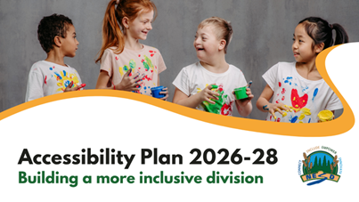 Image description / alt text: Four children laugh and play together with paint in front of a grey background. ‘Accessibility Plan ...